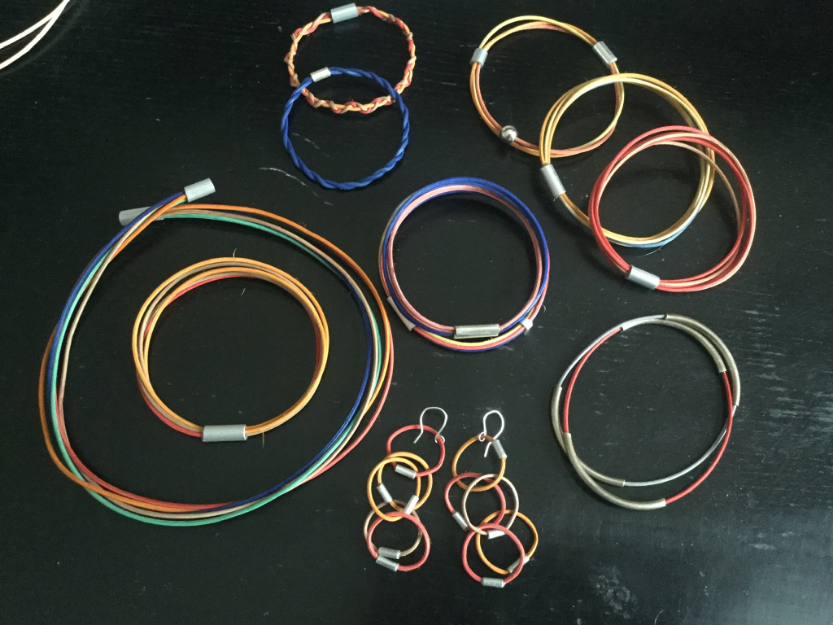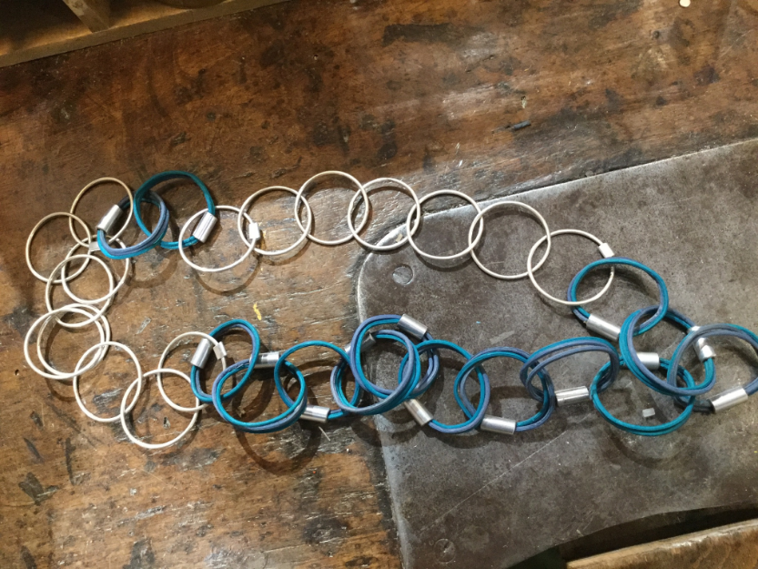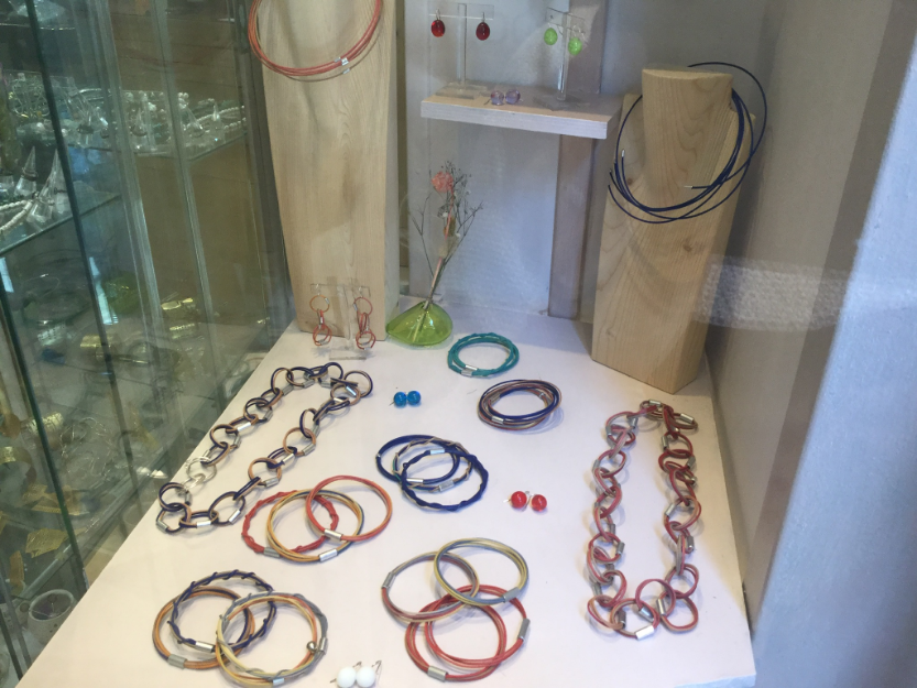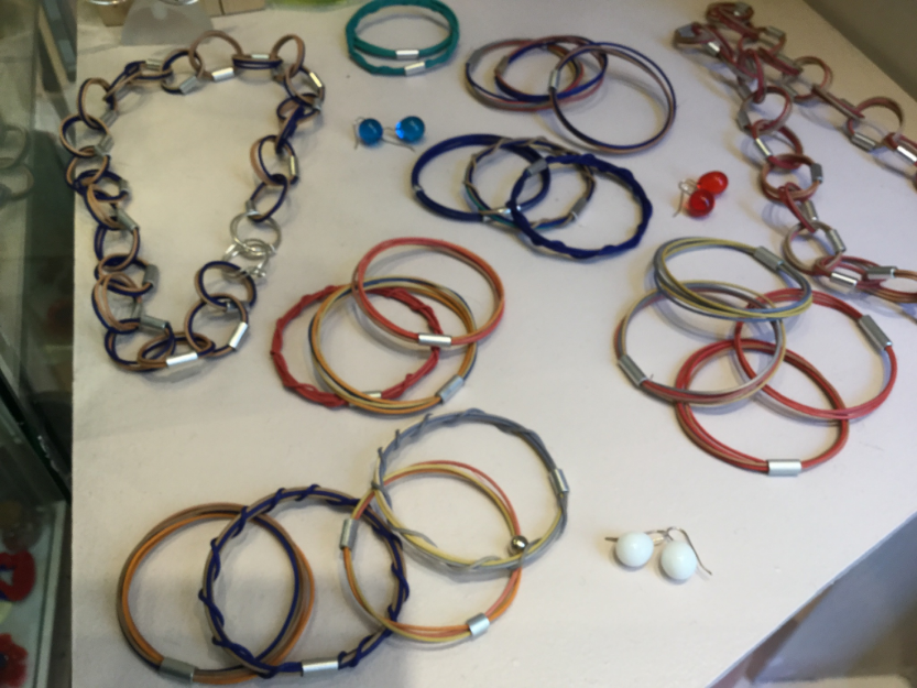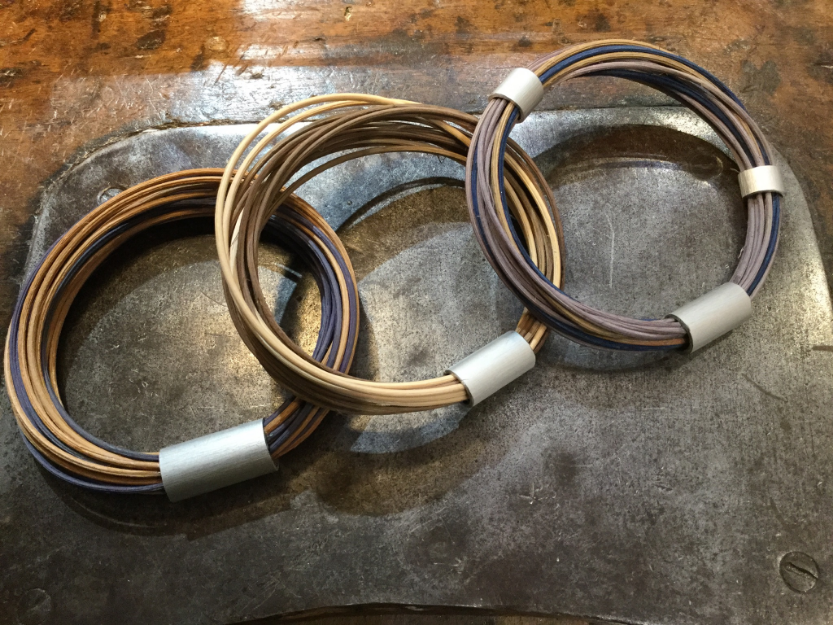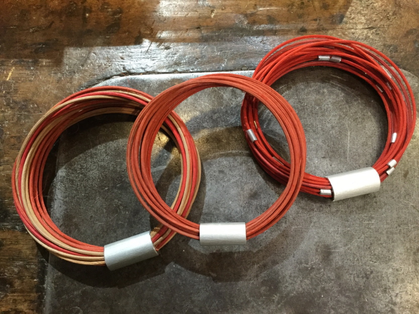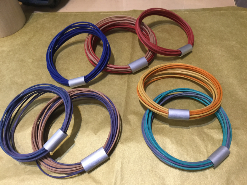 Bijoux en rotin naturel teinté à la main, avec aluminium et argent