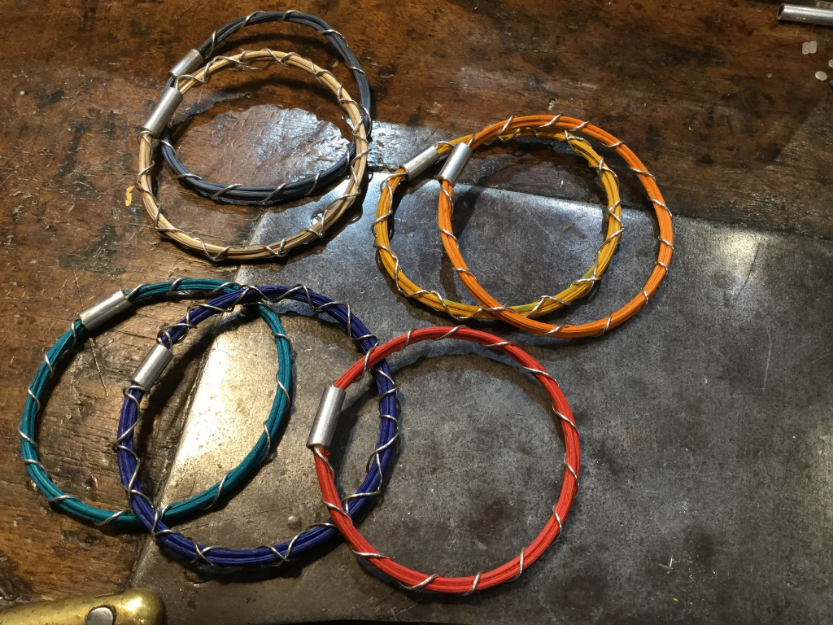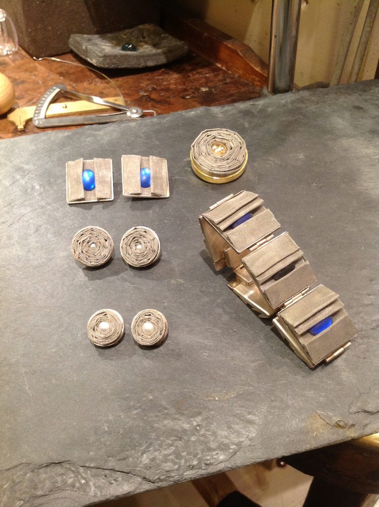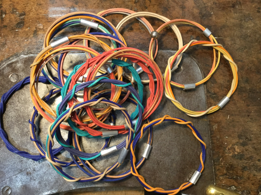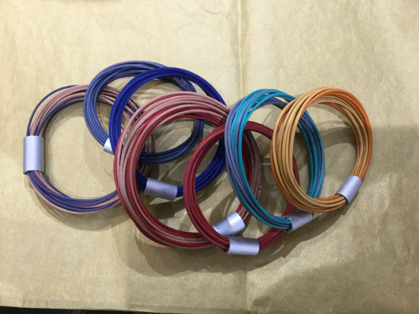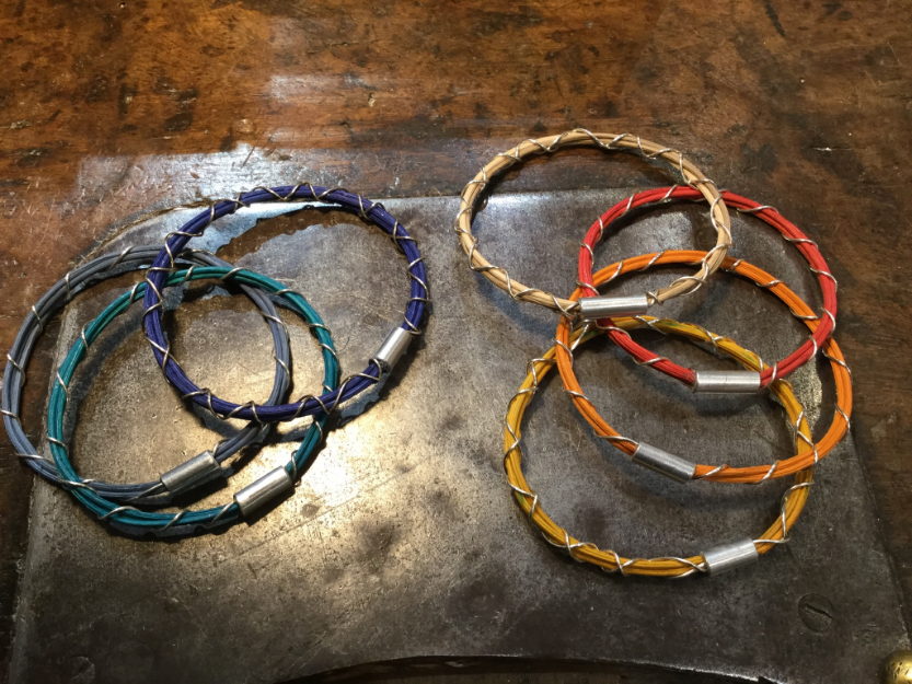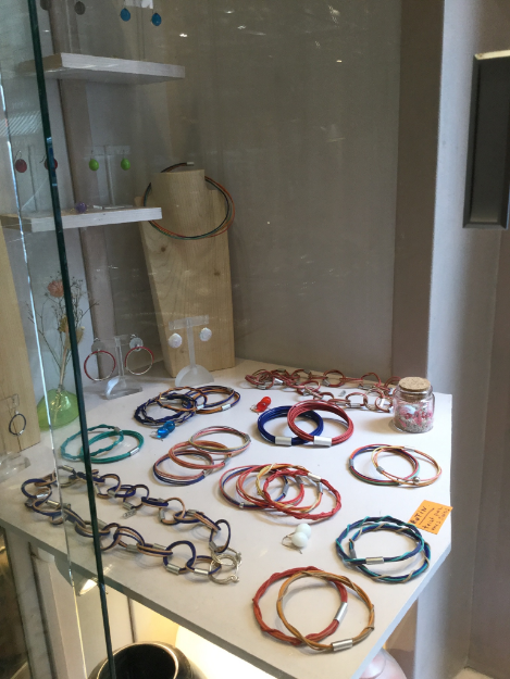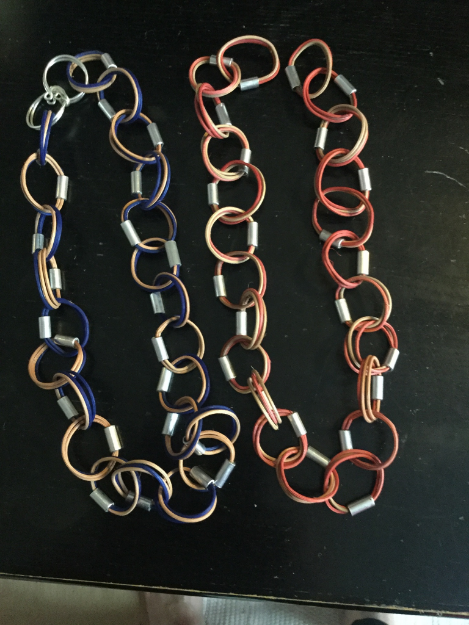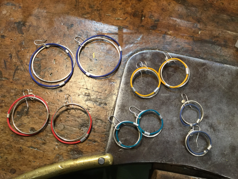 Bijoux en rotin naturel teinté à la main, avec aluminium et argent